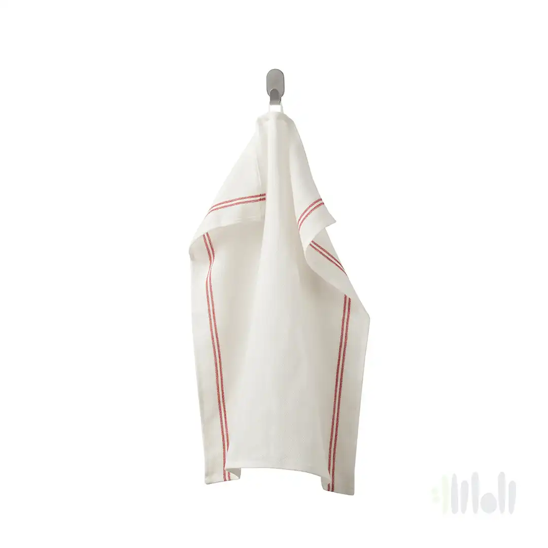 دستمال آشپزخانه ایکیا HILDEGUN به رنگ سفید با نوار حاشیهای قرمزرنگ است، بنابراین میتواند بهراحتی با دکوراسیون آشپزخانه شما مطابقت داشته باشد. این دستمال همچنین قابل شستشو در ماشین لباسشویی و خشککن است و به همین دلیل مراقبت از آن نیز آسان است.