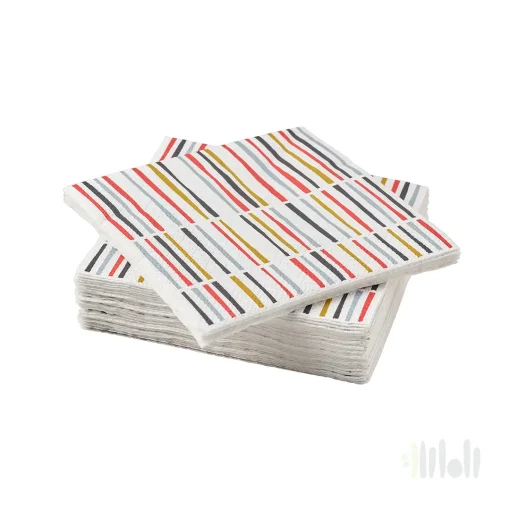اندازه دستمال کاغذی ایکیا طول: ۲۴ سانتیمتر – عرض: ۲۴ سانتیمتر است هر بسته دستمال کاغذی شامل ۳۰ عدد است.