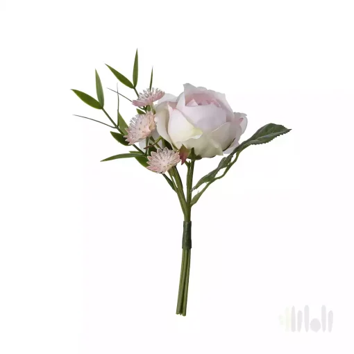 دسته گل مصنوعی رز ایکیا SMYCKA با داشتن یک گل رز صورتی روشن و چند غنچه در حال شکفتن و برگهای سبز، جلوه بسیار طبیعی دارد و ذهن شما را فریب میدهد و حس و حال دستهگل طبیعی را به شما القا میکند.