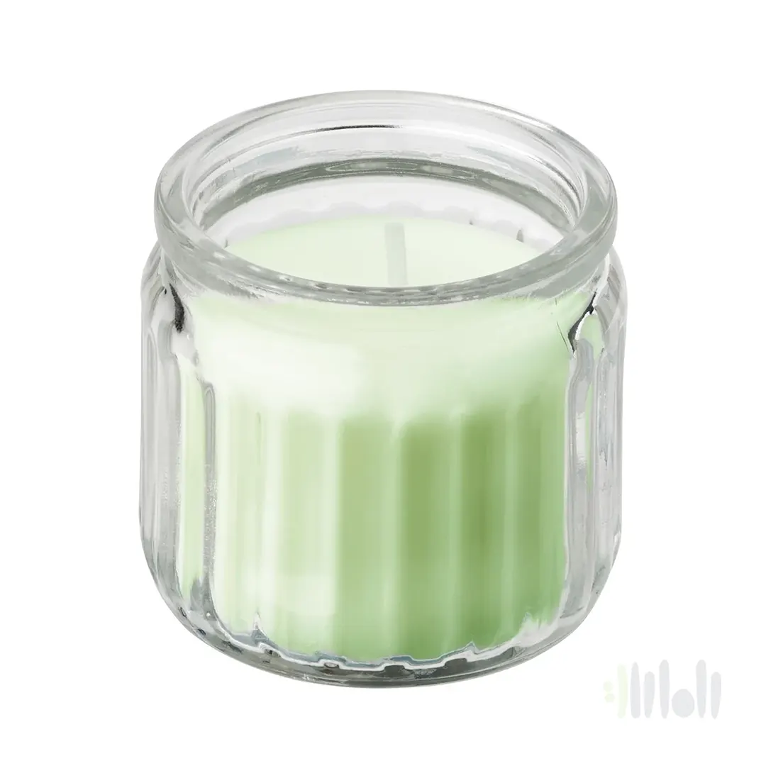 شمع لیوانی معطر سیب سبز ایکیا LOVSKOGSLUND، ایکیا با رایحه سیب سبز تازه، یکی از محصولات محبوب سری Home fragrance ایکیا است که حس طراوت و شادابی طبیعت را به فضای خانه میآورد.