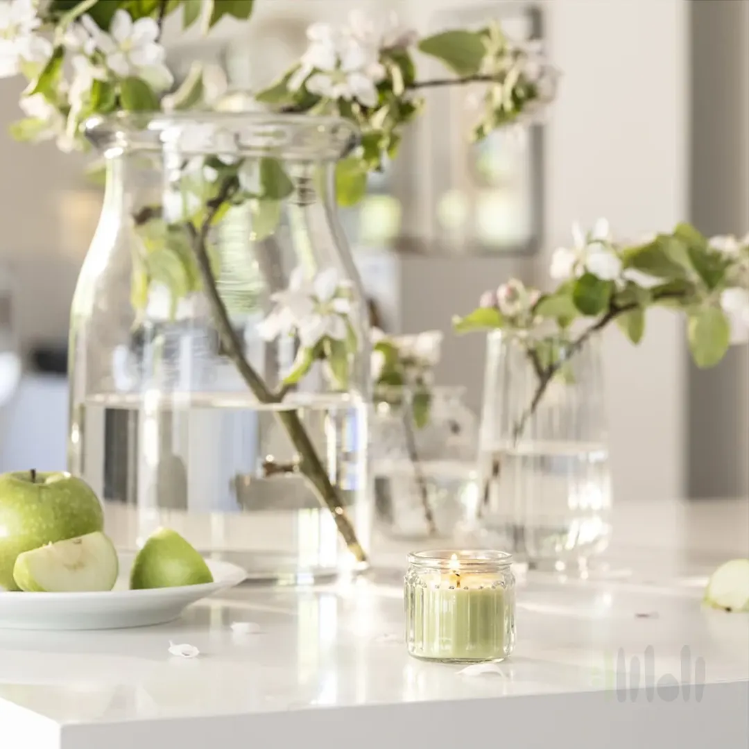 - اتاق نشیمن و پذیرایی: شمع لیوانی معطر سیب سبز ایکیا LOVSKOGSLUND روی میز جلوی کاناپه یا میز ناهارخوری بگذارید تا هنگام مهمانی یا شبهای خانوادگی، رایحه تازه سیب فضا را پر کند.