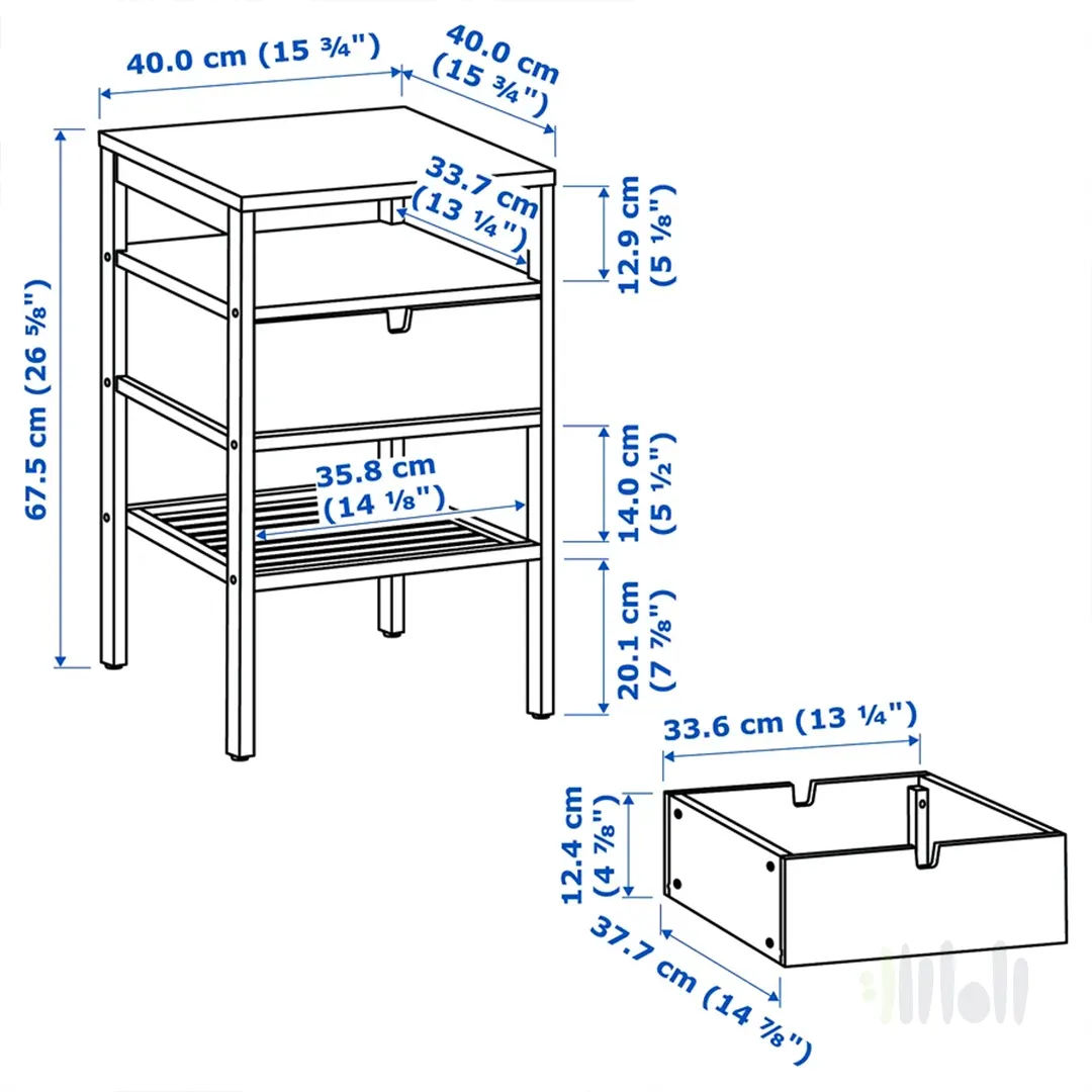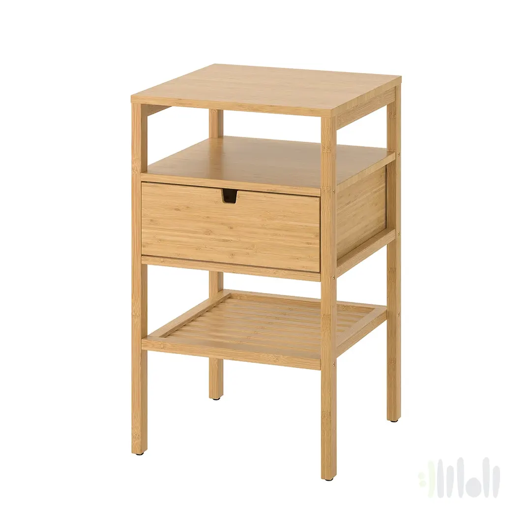 میز کنار تخت بامبو ایکیا NORDKISA به عنوان «همراهی مفید برای نگهداری کتاب، مجله یا لیوان آب کنار تخت» توصیف شده است. کشوی آن از هر دو طرف قابل دسترسی است و اگر شارژر گوشی را داخل کشو بگذارید، میتوانید کابل را از دستگیره کشو عبور دهید تا مدیریت کابلها ساده و مرتب شود.